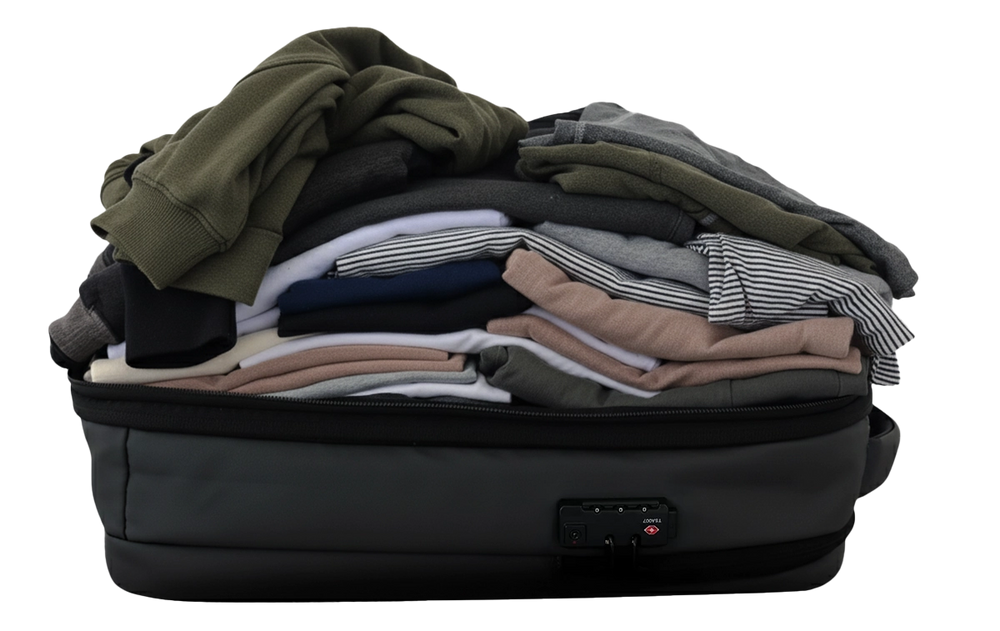 This bag surprised me. The compression works great — I got over 26 pieces of clothing in without any problem.