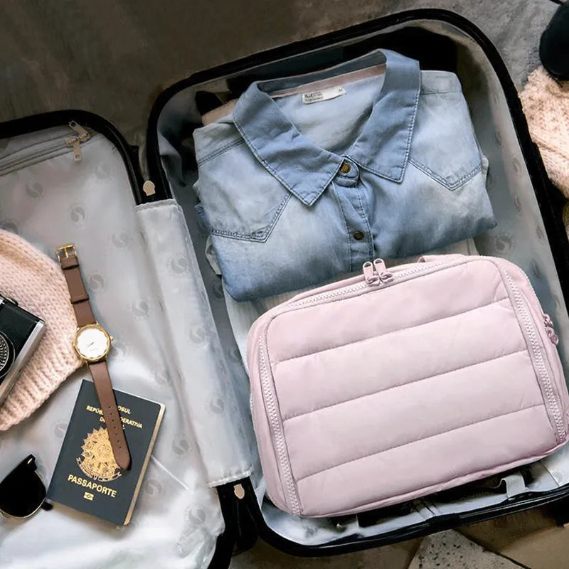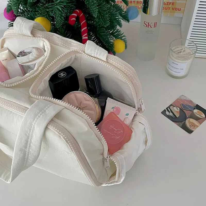 Drawing inspiration from the elegant shape of a duffle bag, this design blends function with softness. Whether hand-carried or placed in your luggage, it adds a refined, cloud-like touch to your travel setup.